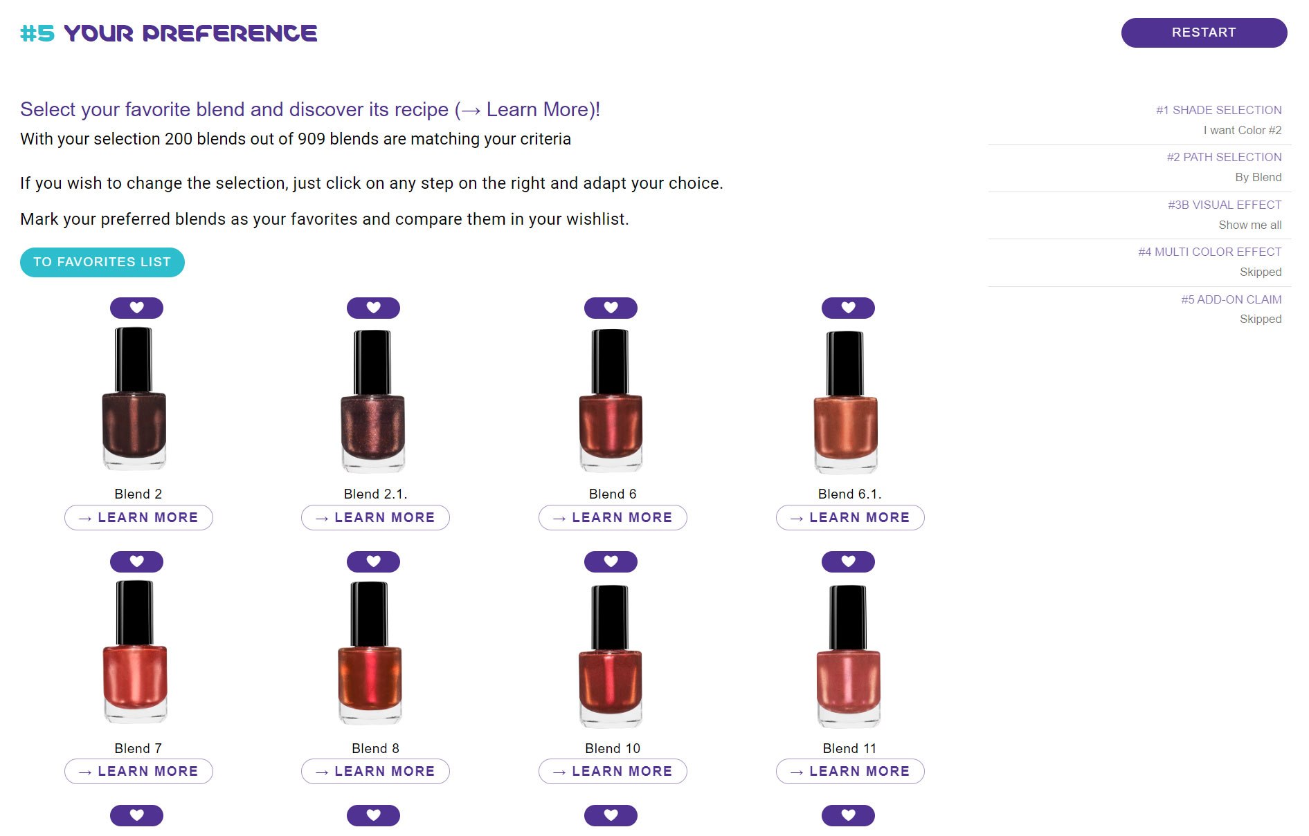 您是否了解选择合适的效果颜料以满足化妆品配方所需的色调以及市场宣称时常遇到的问题?或者您正在寻找一种新的引人注目的幻彩效果?这个问题就是:颜色匹配过程会非常耗时。我们为您提供高效的解决方案——“化妆品颜料色彩库”搜索工具。色彩库借助于指甲油配方以展示最真实的色彩、闪光强度和变色效果。同时,您可以根据具体宣称来选择色调,例如无胭脂红、cosmos或纯素认证等。