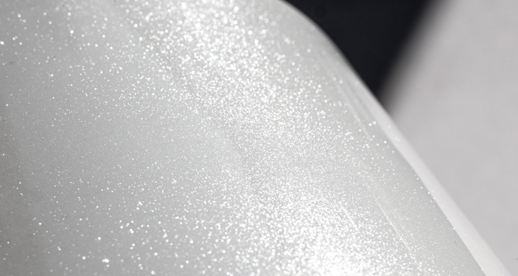Xirallic® NXT Leopard White 即使在较低加量下也能呈现高闪耀强度;在较高加量下,其闪耀在宽广视角范围内均清晰可见;在较低加量时,近镜面角闪耀感强,而在其他角度则几乎无闪耀或仅有极低闪耀。无论从哪个角度观察,色相都保持稳定,并呈现强烈的角度对比。
